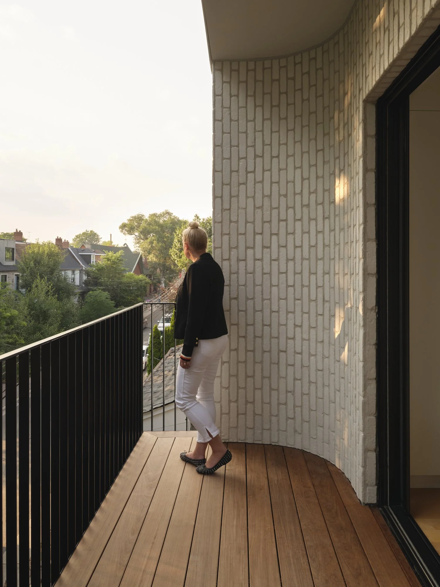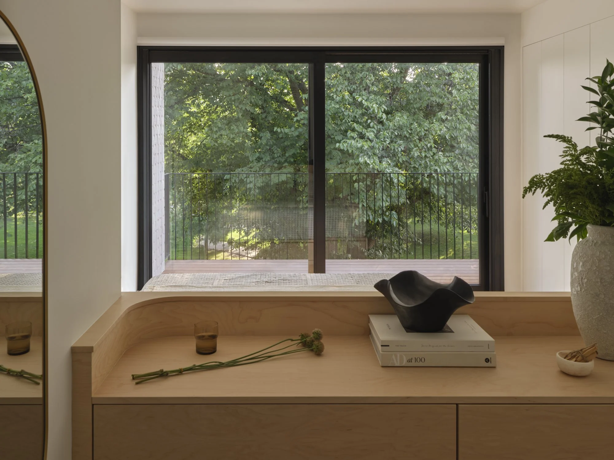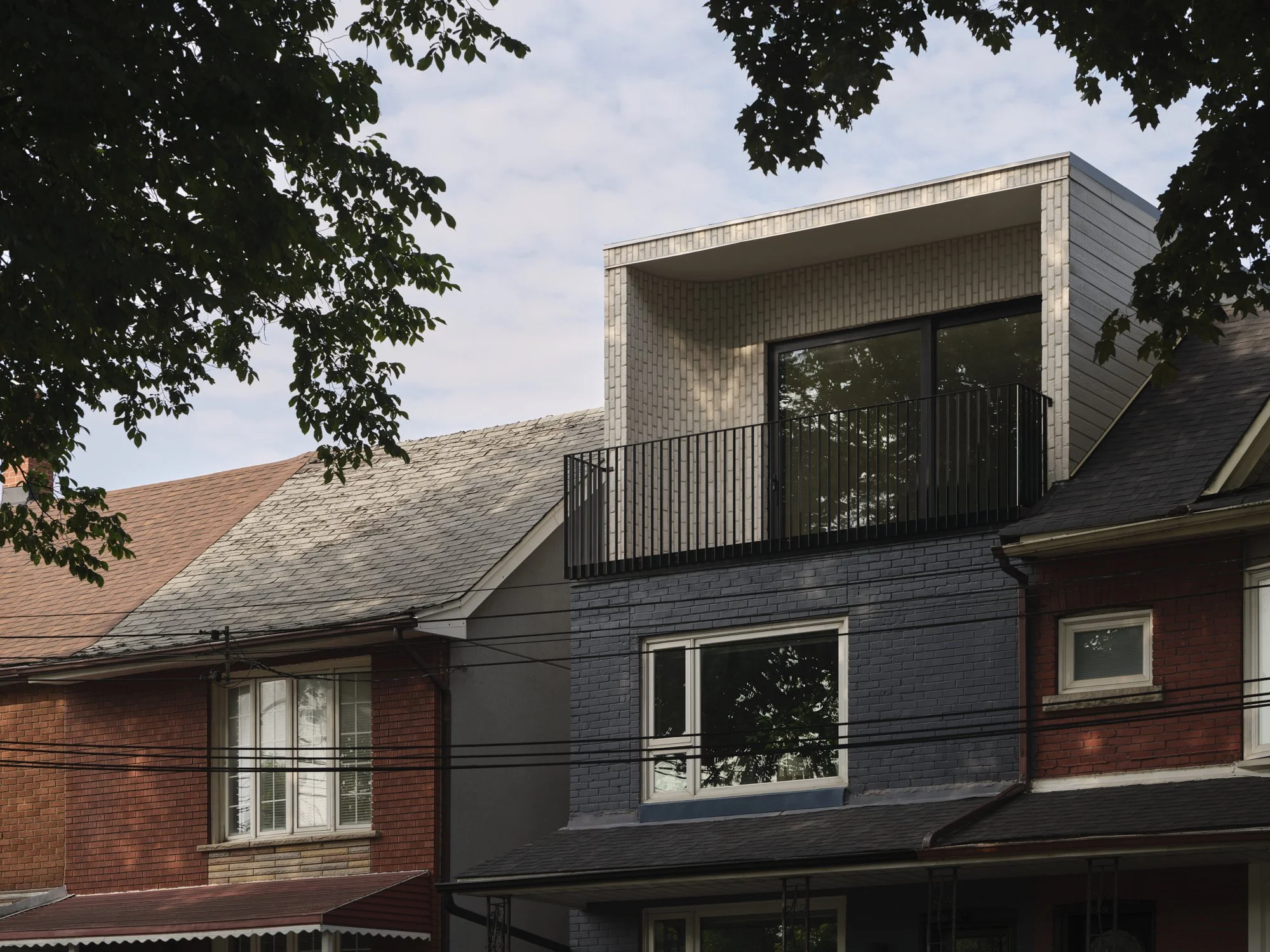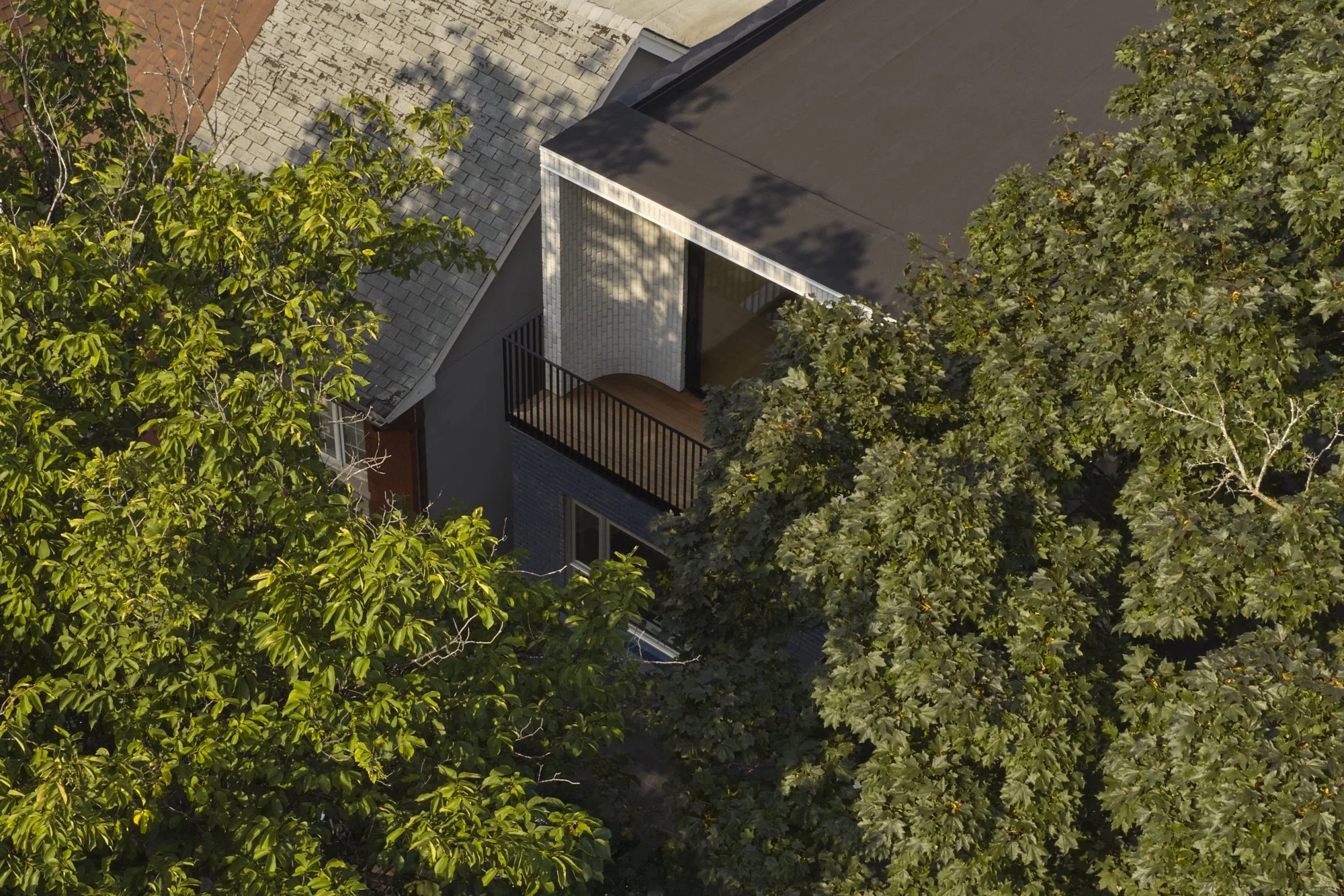 BTrinity Treehouse is a third-storey addition to a semi-detached home on Gore Vale Avenue, overlooking Toronto’s Trinity Bellwoods Park. The addition is an architectural intervention that enhances both the home’s functionality and its connection to the surrounding landscape. The exterior respects the neighbourhood’s character, with a thin-brick veneer facade that complements the original home. A curved balcony adds privacy while making a subtle architectural statement, which is echoed in the interior through the custom millwork.